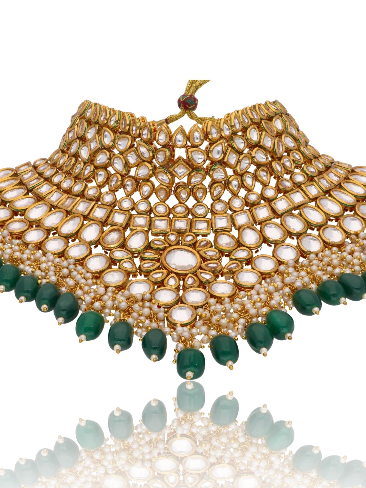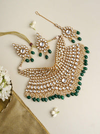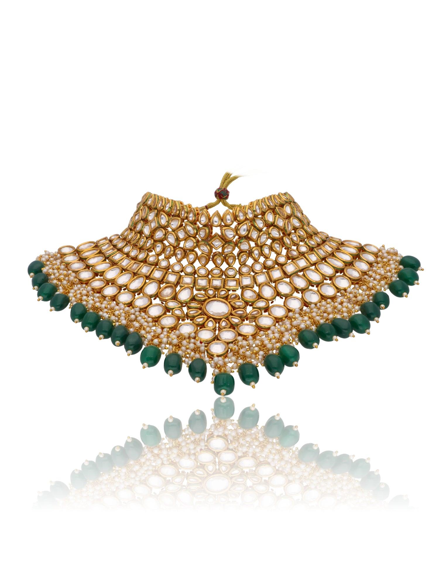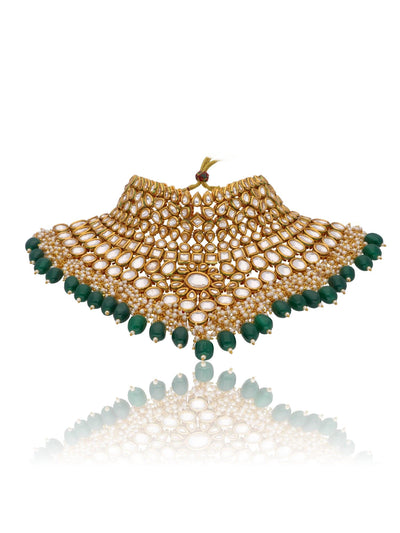 Bridal Kundan and Green Stones High Neck Choker Set