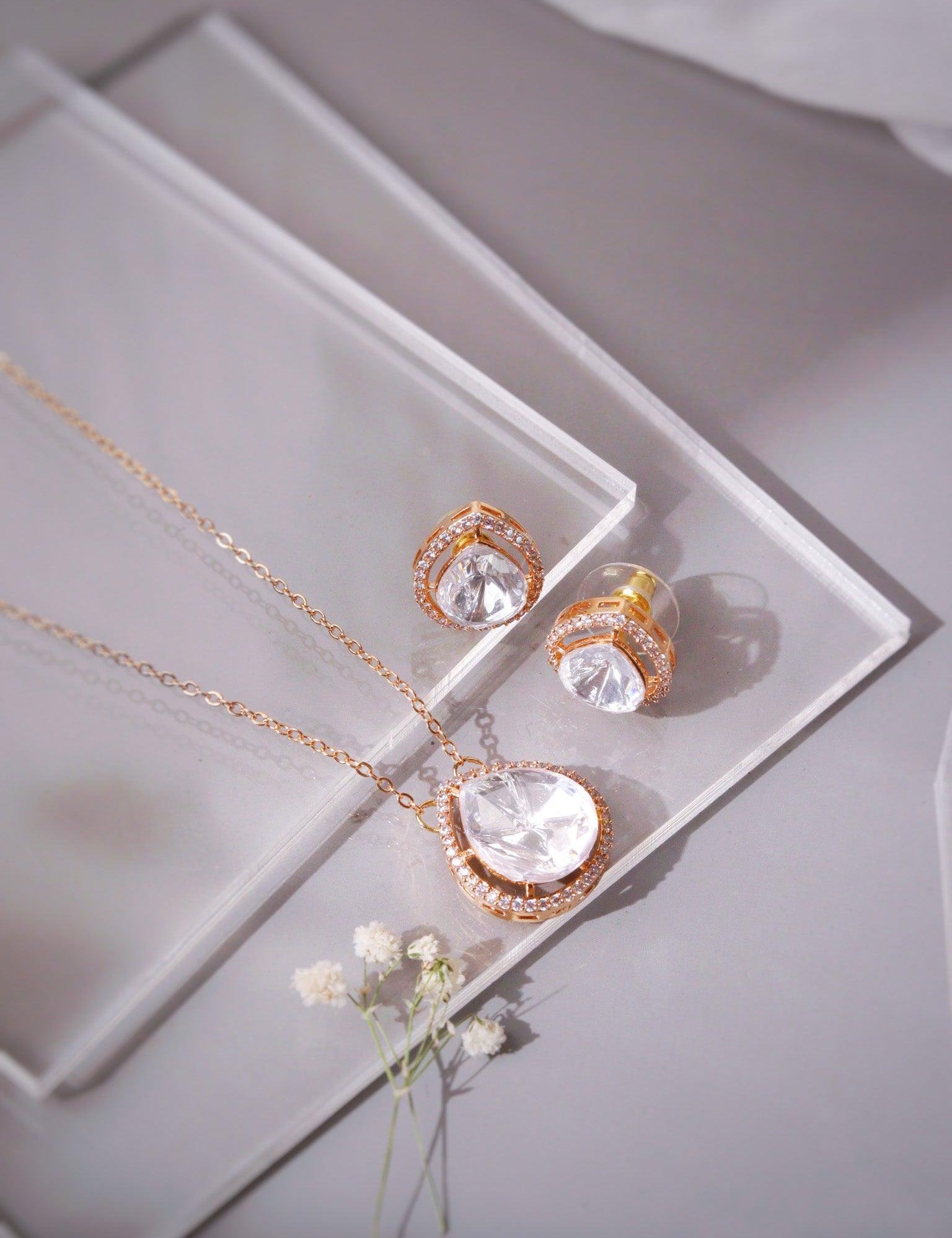Zoya Polki Pendant Set is likely to be a luxurious and ornate jewelry set that incorporates traditional Indian design elements and resembles the natural beauty of clear uncut stones. It is likely to be a statement-making accessory that can be worn for special occasions, events or even everyday.